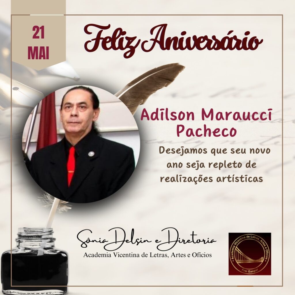 A Academia Vicentina de Letras, Artes e Ofícios parabeniza nossa querido associado Adilson Maraucci Pacheco pelo seu aniversário.