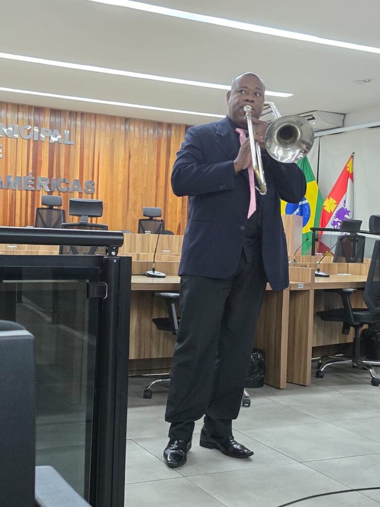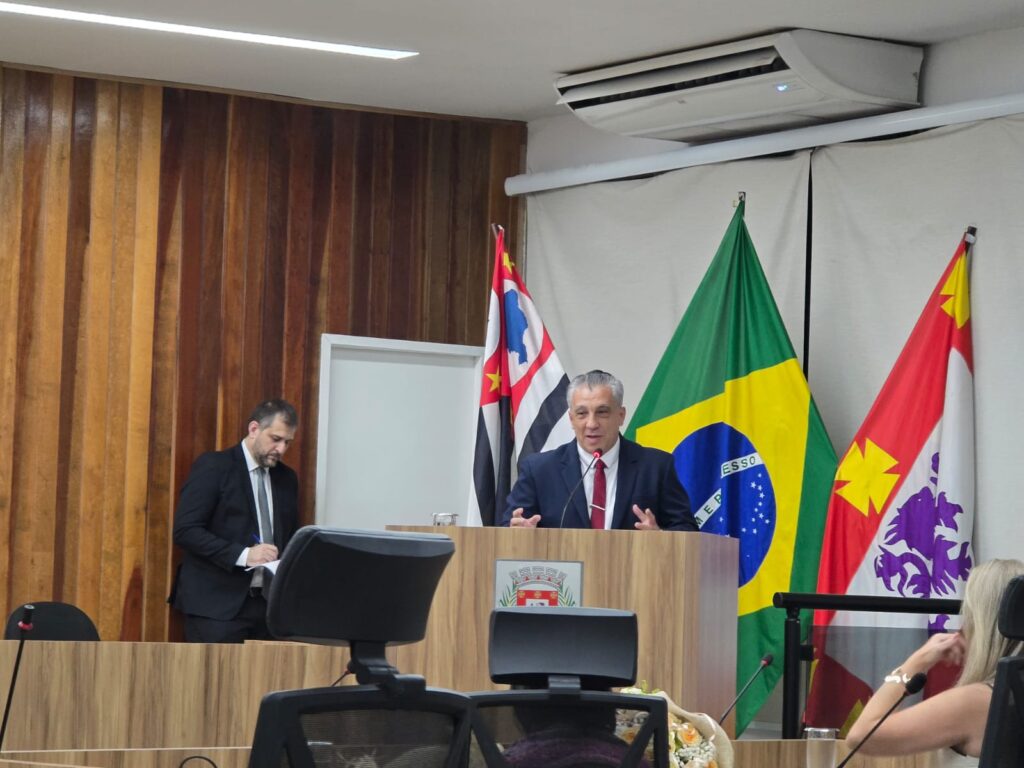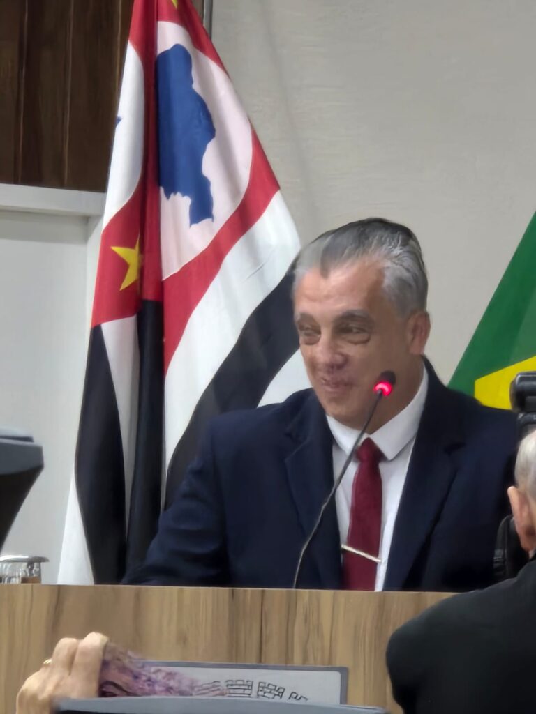 Durante a solenidade, o vereador Edivaldo da Autoescola fez a saudação ao homenageado, destacando sua atuação e contribuição para a sociedade local. A cerimônia contou com as presenças dos membros da Mesa Diretora, Fernando Paulino (1º Secretário), Wagner Santos Pinheiro (Presidente), Rodrigo Digão (2º Secretário) e demais autoridades.