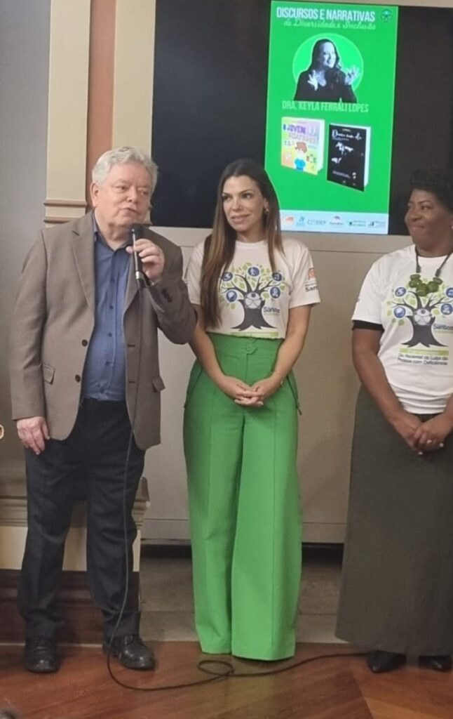 A Mostra Literária "Discursos e Narrativas de Diversidade e Inclusão", realizada na Pinacoteca Benedicto Calixto em 12 de setembro, contou com a participação do escritor Maurilio Tadeu de Campos, que representou a Academia Santista de Letras e a Academia Vicentina de Letras, Artes e Ofícios "Frei Gaspar da Madre de Deus". Em seu discurso, ele parabenizou o evento e ressaltou a relevância do tema para a sociedade.