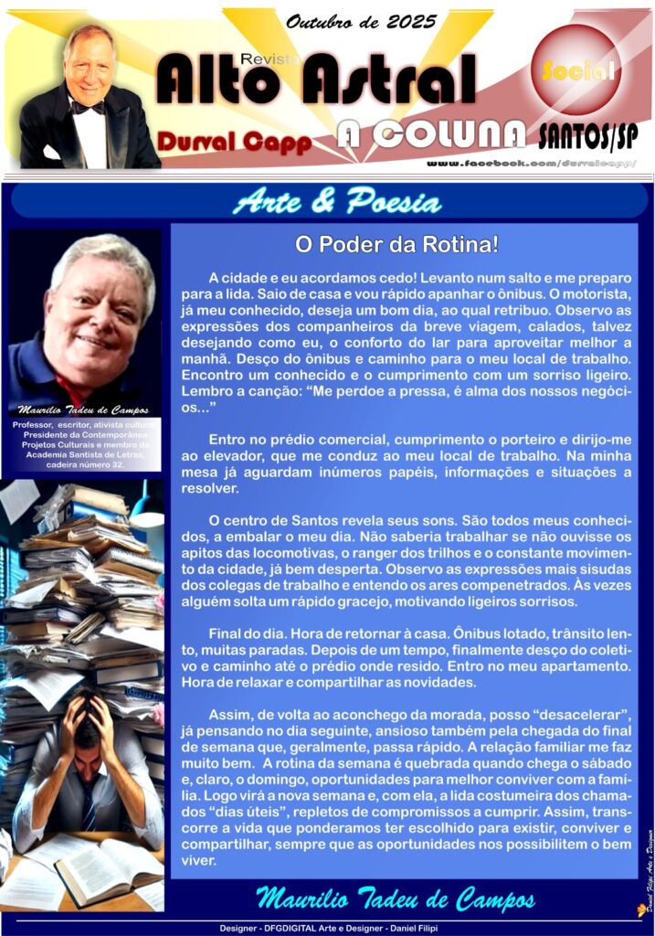 Professor, escritor, atletista, Presidente da Contemporânea Literatura, Clube do Choro, Academia Santista de Letras, Cadeira número 30.Revista Alto Astral | Social