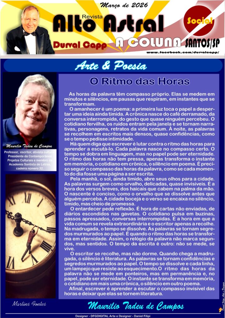 Arte & Poesia o texto “O Ritmo das Horas”, assinado por