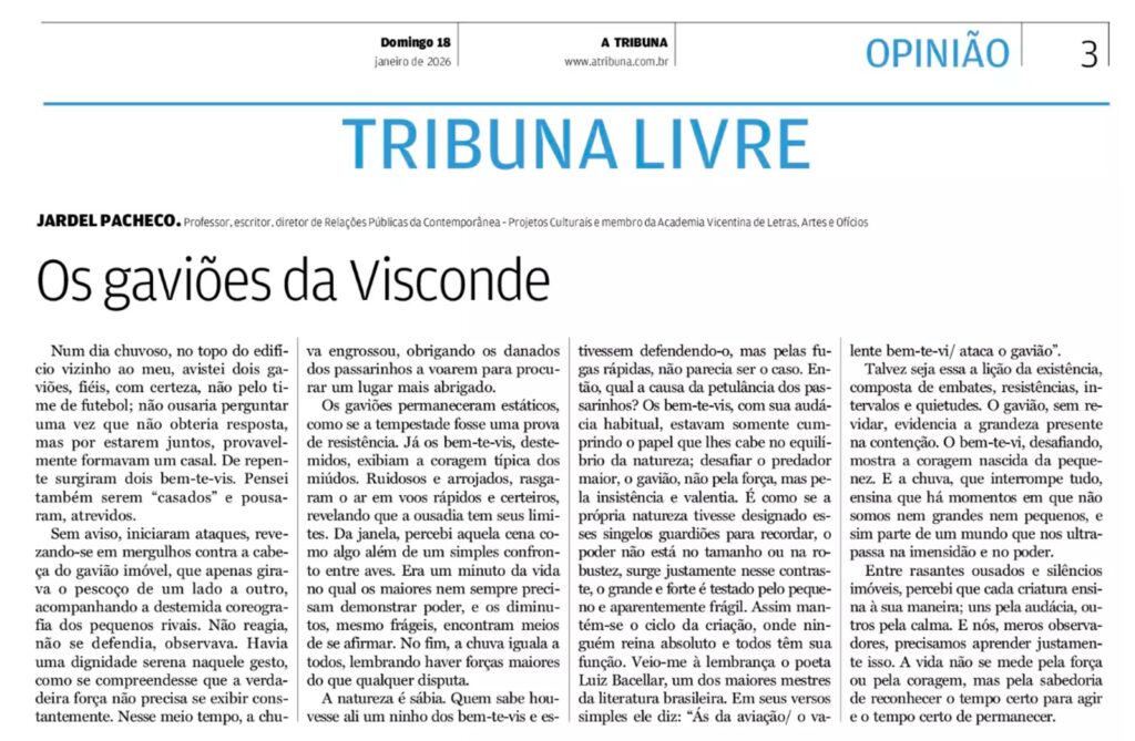 Notícias :: Os gaviões da Visconde – por Jardel Pacheco – A Tribuna – 18/01/2026