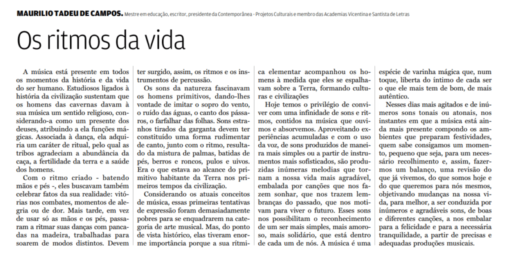 Notícias :: Os ritmos da vida – Jornal A Atribuna – 26/10/2025
