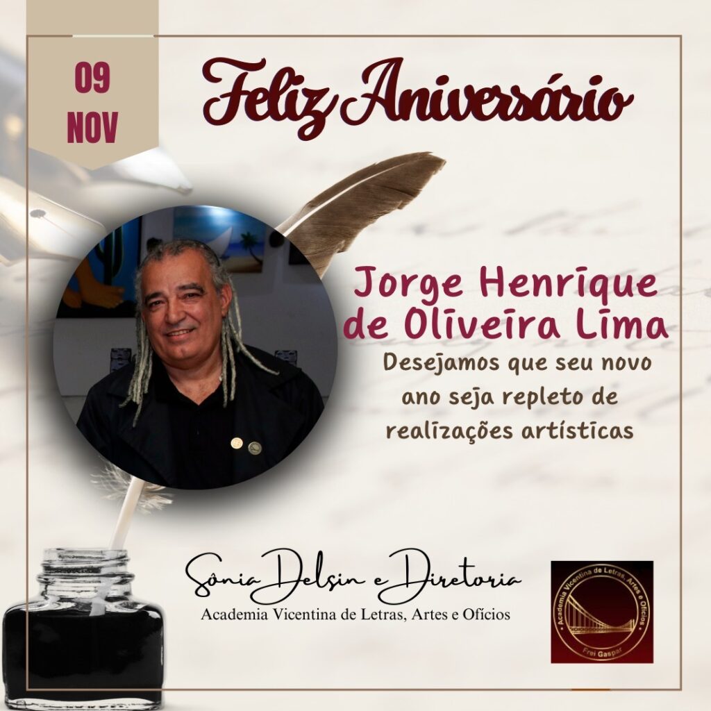 Academia Vicentina de Letras, Artes e Ofícios parabeniza nosso querido associado Jorge Henrique de Oliveira Lima pelo seu aniversário.