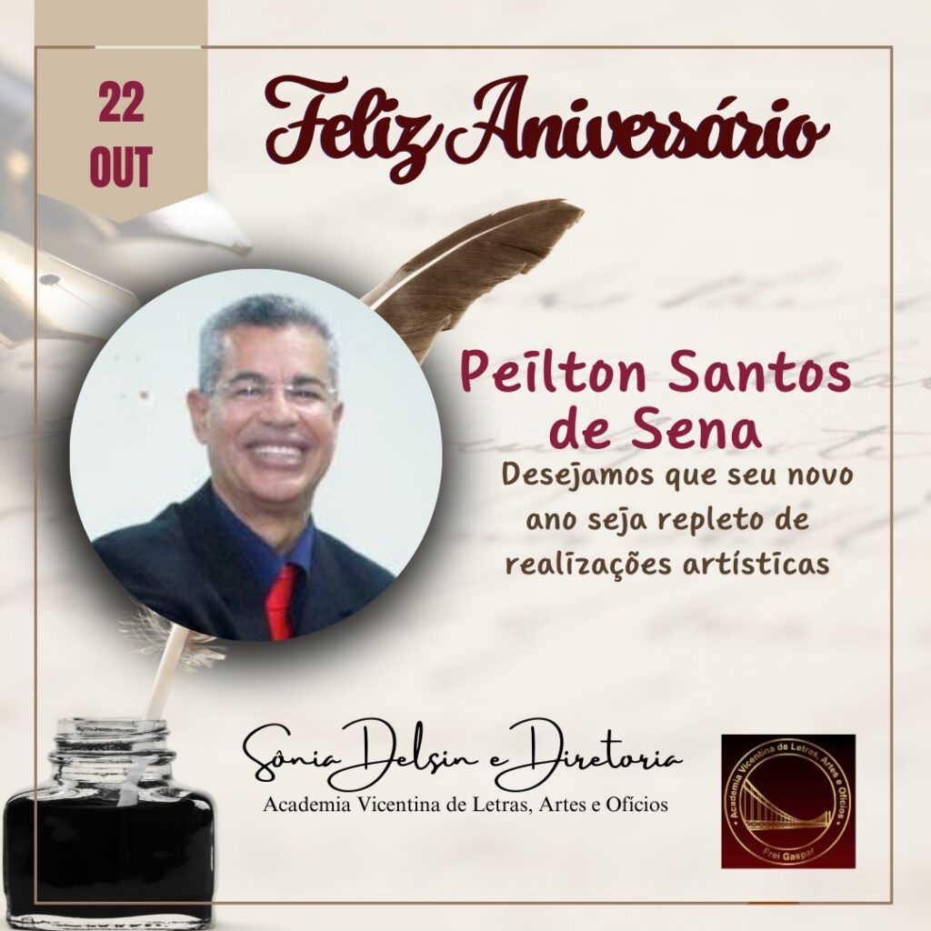 Academia Vicentina de Letras, Artes e Ofícios parabeniza nosso querido associado Peilton Santos de Sena pelo seu aniversário.