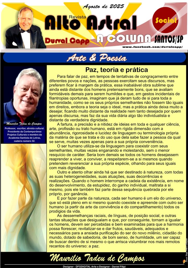 :: “Paz, Teoria e Prática” por Maurilio Tadeu de Campos – Revista Alto Astral – Agosto 2025