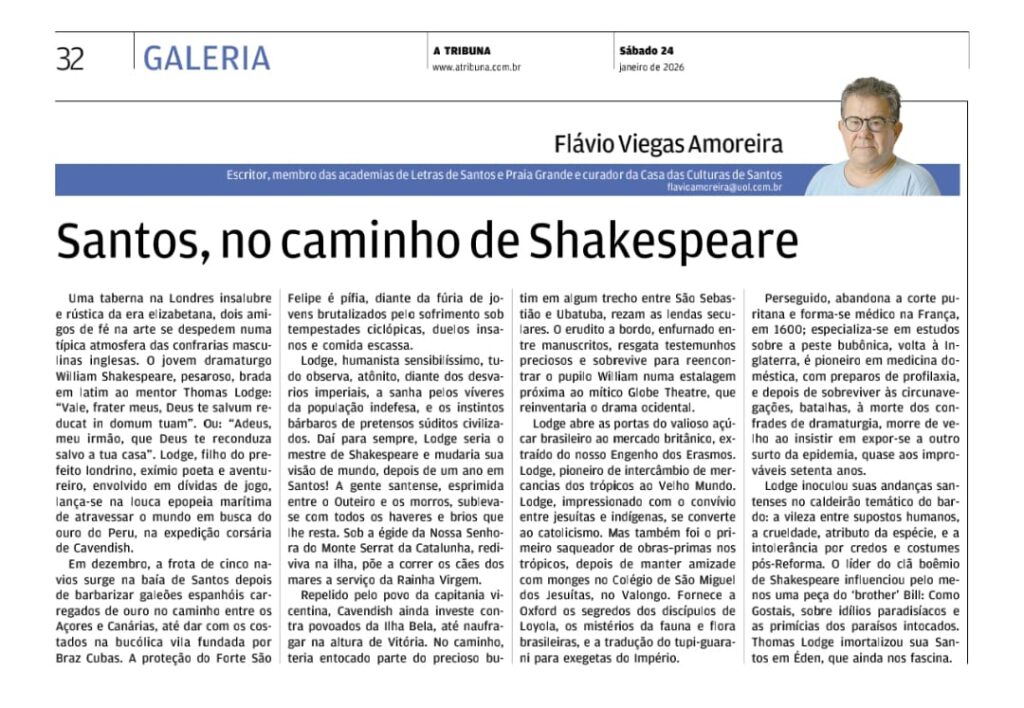 Notícias :: Santos, no caminho de Shakespeare – Jornal A Tribuna – 24/01/2026